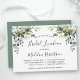 Moderne Elegant Aquarelle Botanique Verdure Fête des mariées Luncheon Invitation Card comprend des feuilles d'eucalyptus, vert feuillage botanique, feuilles bleu poussiéreux et d'autres belles verdure botanique. Script de calligraphie. Arrière vert de sange
