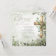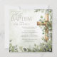 Invitation Aquarelle vert feuille bois croix moderne baptême