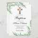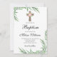 Invitation Aquarelle Vert Fleurs Fille Baptême