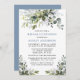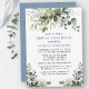 Moderne Elegant Aquarelle Botanique Verdure Fête des mariées Luncheon Invitation Card comprend des feuilles d'eucalyptus, vert feuillage botanique, feuilles bleu poussiéreux et d'autres belles verdure botanique. Bleu Dusty Back.