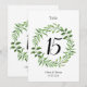 Élégant numéro de table mariage de verdure avec feuilles vert aquarelle couronne. Idéal pour les mariages de la nature printanière et d'autres événements de jardin botanique moderne.