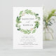 Élégantes invitations de mariage botanique avec vos noms encerclés par une couronne de feuillage aquarelle dans les tons de printemps et de vert mousse. Personnalisez le faire-part de mariage de verdure boho avec vos détails mariages ci-dessous. Le faire-part de mariage botanique moderne est parfait pour les mariages du printemps et de l'été.