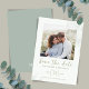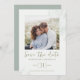 Annoncez votre journée spéciale avec ce carte photo mariage à jour, doté d'un modèle personnalisable dans les tons vert pastel. Conçue avec un script de calligraphie élégant, une typographie raffinée, et une mise en page propre, simple et minimaliste, cette carte présente magnifiquement votre photo préférée. Un monogramme personnalisé de mariée et de mariée ajoute une touche intemporelle, ce qui en fait le choix idéal pour les couples à la recherche d'une façon moderne et élégante de partager leur prochain mariage.