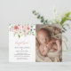 Cette invitation comprend une photo du bébé, des fleurs d'aquarelle, et une croix à la famille invitation et des amis à un baptême.
