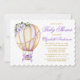 Elégante aquarelle moderne violet violet blanc floral chaud ballon à air chaud avec Baby shower à cou violet Invitation. Comprend de beaux roses d'aquarelle violet, des fleurs blanches et de la végétation botanique. Gold et Purple Text.