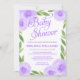 Invitation Aquarelle violette Baby shower de fille feuille fl