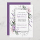 Fleurs d'aquarelle violette et rose avec feuilles vert foncé et violet et tiges entourent un double cadre rectangle tenant vos détails mariages. Le dos de la carte est un violet poussiéreux. Les modèles de texte sont faciles à personnaliser à l'aide d'un texte de calligraphie orné et d'une police moderne. Si vous désirez ce design sur un autre produit, ou si vous avez besoin d'aide de quelque façon que ce soit, veuillez me contacter par l'intermédiaire de mon magasin.