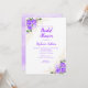 Cet élégant design floral est parfait pour les invitations branchées à la douche nuptiale. Le texte est encadré de bouquets de roses d'aquarelle violette et d'accents de fleurs dorées dans deux coins opposés.