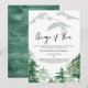 Changement de plan ! Annoncez à votre famille et à vos amis le report de votre mariage avec ce changement boisé de plans carte plat. Il dispose d'aquarelle forêt et paysage de montagne avec une aquarelle verte assortie image arrière. Personnalisez en ajoutant vos noms et autres détails. Cette carte d'annulation de mariage forestier sera également parfaite comme faire-part d'élévation.