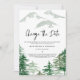 Changez la date ! Annoncez à votre famille et à vos amis le report de votre mariage avec cette carte de remise de mariage boisé. Il dispose d'aquarelle forêt et paysage de montagne avec une aquarelle verte assortie image arrière. Personnalisez en ajoutant vos noms et autres détails. Cette carte d'annulation de mariage forestier sera également parfaite comme faire-part d'élévation.