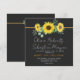 Invitation Aquarelle Yellow Sunflowers Carré noir Mariage