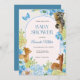Invitation Aquarelles bleues Beaux Animaux Fleurs Baby shower