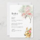 Pony avec des fleurs roses dans ses cheveux. Aquarelles. Baby shower aquarelle Invitation. Blush & Pink.