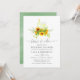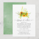 Invitation tendance peinte à la main à l'aquarelle pour dégustation de vins aux tournesols avec fond lavé d'aquarelle vert sauge pour une fête de fiançailles, une baby shower pour les futurs mariés ou une répétition de mariage.