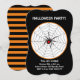 Belle invitation d'Halloween en forme d'araignée veuve noire. Rayures noires et orange sur le verso. Tous les textes et numéros sont prêts à être personnalisés.