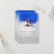 Arbre magique et fantaisiste de l'amour Arbre à feuilles bleu royal sur papier métallisé argenté chaud taché de thé avec un overlay de partitions antiques et quelques petits dessins tourbillonnants pour mettre en valeur les racines de l'amour sur ce carton d'invitation de mariage unique en forêt... Ceci est montré sur le grand format 5x7 comme demande personnalisée pour affichage dans un lieu de travail ou une église. Veuillez passer au format plus petit 3x5 pour une carte encart.