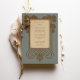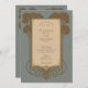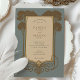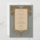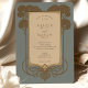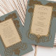 Annoncez votre mariage avec une élégance intemporelle à l'aide de cette invitation d'inspiration Art Déco. Le design comprend un panneau central avec des détails d'invitation encadrés par des arbres stylisés et des défilement complexes dans des tons riches d'or et de marron, dressés contre un arrière - plan sophistiqué gris-bleu. Les arbres rappellent la période art déco. L'envers, pour "The Finer Details", présente une disposition complémentaire avec les mêmes éléments de défilement et d'arbre stylisés encadrant le texte. Cette suite évoque le glamour classique et le charme vintage. Idéal pour les couples à la recherche d'un faire-part sophistiqué, élégant et mémorable pour leur mariage, parfait pour une célébration formelle ou vintage.