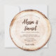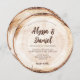 Capturez le charme rustique et la beauté naturelle d'un mariage en pleine nature avec la carte d'invitation personnalisée en forme de tranche de bois "Wood Rustic Wedding". Inspirée par l'élégance intemporelle des tranches de bois et des cernes des arbres, cette invitation est conçue pour faire une impression durable sur vos invités.
