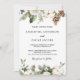 Invitation Arbre de pin vert d'hiver à l'aquarelle & fleurs b