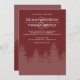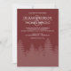 Cette invitation de mariage d'hiver moderne comprend un riche arrière - plan bordeaux avec une forêt de pins défraîchie. La couleur Arrière - plan peut être modifiée pour correspondre à votre thème mariage. Les arbres seront toujours une version plus légère de la couleur arrière - plan sélectionnée.