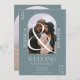 Invitation Arc boho moderne 2 photos mariage bleu poussiéreux