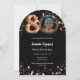 Une invitation photo moderne et élégante pour une fête d'anniversaire de 80 ans. Un fond noir classique, orné d'étoiles dorées roses. Personnalisez et ajoutez les détails de votre fête.
