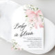 Invitation Arc de Baby Shower Fleurie Bébé Fille au Ruban Ros