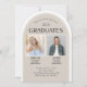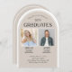 Cette élégante invitation à l'obtention d'un diplôme de fin d'études supérieure voûtée présente un design spécifique pour deux diplômés. L'invitation est parfait pour frère et soeur, jumeaux ou amis. Le côté arrière offre de l'espace pour une photo horizontale supplémentaire et du texte supplémentaire.