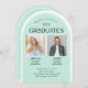 Cette élégante invitation à l'obtention d'un diplôme de fin d'études supérieure voûtée présente un design spécifique pour deux diplômés. L'invitation est parfait pour frère et soeur, jumeaux ou amis. Le côté arrière offre de l'espace pour une photo horizontale supplémentaire et du texte supplémentaire.
