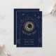 Céleste mystique personnalisée enregistrer la date avec cadre d'arc avec galaxie laiteuse façon ciel de minuit, la poussière d'étoile, la lune de croissant et d'autres symboles astrologiques dans les couleurs bleu marine et doré et la citation écrite "CAUSE DANS LE CIEL PLEIN D'ÉTOILES JE VOUS AI VU". Cette carte est facilement modifiable. Si vous avez besoin d'aide pour la personnalisation de cette carte ou si vous avez besoin de plus de produits correspondants pour cette collection, envoyez-moi un message aimable via Zazzle.