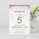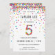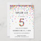 Arc-en-ciel 5 ans anniversaire / 5ème anniversaire invitations de fête! Avec les détails de votre fête de garçon ou de fille de 5 ans et un "5" en confetti, avec des cercles amusants de confettis couleur arc-en-ciel qui saupoudrent du sommet de ces mignons invitations