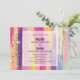 Faire-part de mariage avec un design arrière - plan abstrait. Des rayures vives aux couleurs à la fois audacieuses et pastel. Roses, bleus, violets et couleurs jaunes associés à la parties scintillant brillante en faux or superposé.