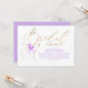 Célébrez la future mariée avec cette invitation de mariage romantique violette et or, avec une calligraphie élégante et un nœud aquarelle doux accentué de tons lavande délicats.