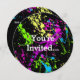 Invitation Arc-en-ciel rétro de Neon Paint Splatz sur noir