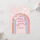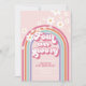 Quatre Jamais Super ! Retro a inspiré l'invitation de 4ème anniversaire avec des polices et des couleurs de style années 70, arc-en-ciel, et marguerites.