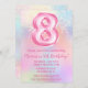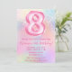 Pink Rainbow 8th Birthday Invitation Girly Pink Parties scintillant anniversaire invitation pour une fille de 8 ans avec écriture de script moderne et des ballons amusants en feuille de papier.