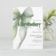 Cette invitation d'anniversaire vert sauge présente un doux nœud aquarelle et des tons neutres élégants pour un look intemporel. Conçue spécialement pour les célébrations d'adultes et de jeunes adultes, cette mise en page moderne convient à toute fête marquante, du 21e au 50e anniversaire. La palette verte subtile et le design minimaliste créent une atmosphère sophistiquée et invitante. Imprimée sur du papier de qualité supérieure, elle est facile à personnaliser avec les détails de votre événement. Célébrez avec style avec cette élégante invitation d'anniversaire vert sauge qui convient à toute réunion moderne.
