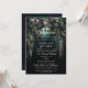 Une aquarelle fantaisie illustrant le feuillage luxuriant et les détails floraux en vert émeraude et mauve, en forme d'arc, brillant de lumière féerique et de poussière magique, décore ce printemps automne hiver Quinceañera invitation avec un thème forestier enchanté. Une invitation élégante et moderne pour un conte de fées Quinceañera. Parfait pour les filles et les familles qui aiment le cadre de la forêt de contes de fées, la forêt de fées ou le thème du jardin de fées et vert émeraude, mauve et or.