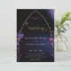 Rose et feuilles eucalyptus, dessinés à la main dans un crayon de couleur et numériquement superposés avec du violet, forment une faire-part de mariage moderne, sophistiquée, élégante et chic qui a un cadre d'arche gothique simple et minimaliste. L'arrière - plan noir et bleu foncé avec des touches de violet et des lumières illuminent le ciel de minuit. L'élégante calligraphie, dans la teinte d'or, rend cette élégante invitation noire et violette encore plus élégante.