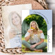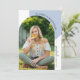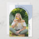 Cette invitation à la remise de diplômes moderne présente une photo voûtée branchée. Le design est accentué par une couleur bleue poussiéreuse et le texte de style d'écriture manuscrite. L'arrière offre une photo complète avec la superposition du texte de l'invitation.