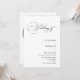 Cette élégante invitation de mariage présente un design raffiné avec un texte romantique en arc qui comprend les mots "Mariage de" élégamment écrit en haut, ajoutant une touche formelle et intemporelle. Associée à une typographie serif épurée et à une écriture manuscrite moderne, cette invitation minimaliste est parfaite pour les couples à la recherche d'un équilibre entre sophistication et simplicité. Le design comprend également de l'espace pour une photo du couple et un code QR à l'arrière pour des options RSVP sans soudure. Essayez d'être vert avec cette invitation tout-en-un écologique moderne en coupant sur les RSVP supplémentaires et les cartes de détails. Ajoutez simplement votre propre code QR au verso de l'invitation pour que vos invités puissent accéder à RSVP et découvrez plus d'informations sur votre mariage. Customisez les noms et le libellé en quelques étapes simples, et personnalisez la carte d'invitation avec votre photo du couple heureux pour lui donner une touche unique et personnelle. Veuillez noter : Le texte géométrique circulaire de "Merci de vous joindre à nous pour le" ainsi que l'élégante belle typographie de "Mariage de" sur le devant de l'invitation ET le libellé "gentiment répondre par" sur le dos de l'invitation ainsi que d'autres éléments d'illustration graphique comme les lignes ne peuvent pas être modifiés, modifiés, déplacés ou supprimés. Elles sont réparées. Si vous devez modifier la couleur, vous pouvez customiser la carte d'invitation. Vous pouvez facilement personnaliser cette invitation avec votre propre texte et la partager numériquement par texte, e-mail ou médias sociaux. Vous pouvez également envoyer une version imprimée à vos invités ou faire les deux : en envoyant une version numérique et en faisant un suivi avec une copie imprimée pour une expérience plus personnalisée.