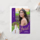 Amis Invitations et famille à votre "Grad Party" avec l'invitation moderne, 2 photo, violet et or. Le design comprend des photos avec une arête voûtée. Le texte personnalisé, à l'envers, vous permet de personnaliser avec les détails de votre partie.
