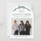 Arc moderne Famille Carte photo de vacances avec Elegant Green Bow Design Capturez l'esprit de l'année de votre famille avec notre carte photo en arc contemporain, avec un détail élégant et vert qui ajoute une touche d'élégance saisonnière. La silhouette unique découpée en dés se détache des modèles rectangulaires traditionnels, créant un impact visuel instantané qui met en valeur la personnalité distinctive de votre famille. Le message d'accueil chaleureux, "Souhaitez-vous une saison de vacances enveloppée d'Amour & Cheer et de tout le meilleur dans la nouvelle année!" offre une connexion chaleureuse et personnelle à vos proches. Cette carte premium permet de réaliser deux photographies familiales soigneusement sélectionnées - l'une sur le devant encadrée par l'arc vert délicat et l'autre sur le côté opposé - créant une approche narrative qui capture vos moments les plus chéris. La carte maintient une esthétique raffinée qui élève votre accueil de vacances. L'espace personnalisable pour votre nom de famille vous assure une touche personnelle qui célèbre votre histoire unique. L'inverse est l'occasion de partager un message qui reflète le parcours, les réalisations et les liens de votre famille. Qu'il s'agisse de souligner les jalons, d'exprimer sa gratitude ou de partager une brève mise à jour sur votre année, cette carte transforme un simple salut de vacances en un souvenir précieux. Ces cartes offrent un moyen sophistiqué de répandre la joie des vacances et de garder vos proches connectés.