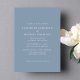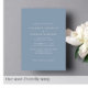 Faire-part de mariage moderne bleu poussiéreux avec votre photo dans un cadre voûté entouré par "To Have And To Hold" dans une élégante typographie blanche. Sous votre photo, ajoutez vos prénoms, votre date de mariage et votre emplacement. Au contraire, personnalisez votre invitation avec plus de détails dans une simple typographie blanche.