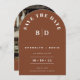 Arch Terracotta moderne Mariage Enregistrer La Carte Date Mariage Arch en terre cuite monogrammes enregistrer la carte de date avec un titre d'arc, monogrammes et la photo de couple et le code QR sur le dos. Idéal pour quelqu'un à la recherche d'une forme voûtée enregistrer la date.