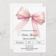Un arrière - plan blanc, décoré d'un grand arc rose. Personnalisez et ajoutez un nom et des détails du parti.