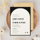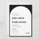 Cette invitation à l'arc moderne présente une typographie audacieuse. Le design est noir et blanc. Il y a un code QR à l'arrière, ce qui rend cette invitation tout-en-un. Élégant et simple.