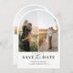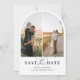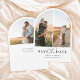 Annoncez votre journée spéciale en style avec ce mariage époustouflant en forme d'arc enregistrez la carte de date. L'avant présente un collage photo unique en forme d'arc qui présente deux de vos photos préférées, joliment jumelé à l'élégant titre "Save the Date" qui combine une police serif raffinée avec une calligraphie moderne. Au verso, incluez une photo et un texte de plus pour plus de détails mariages, afin que vos invités soient bien informés. Parfait pour donner un ton sophistiqué et personnel à votre mariage, cette sauvegarde de la carte date est à la fois intemporelle et moderne. Personnalisez le vôtre aujourd'hui et faites une impression durable!