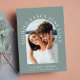 Faire-part de mariage moderne décontracté vert sauge avec votre photo dans un cadre voûté entouré par "Nothing Fancy Just Love" dans élégante typographie blanche. Sous votre photo, ajoutez vos prénoms, votre date de mariage et votre emplacement. Au contraire, personnalisez votre invitation avec plus de détails dans une simple typographie blanche.