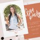 Célébrez le jalon de votre diplômé dans le style avec cette élégante Photo Arc de Script Moderne Terracotta Grad Party Invitation. Doté d'une disposition en arc tendance, d'une écriture manuscrite chic et moderne et d'une photo personnalisée, ce design allie sophistication et touche personnelle. Parfait pour les fêtes de fin d'études secondaires ou collégiales, cette invitation donne le ton d'un événement inoubliable en famille et entre amis. Personnalisez avec l’année de cours de votre diplômé, le nom et les détails de la fête dans une orange vif. Un choix élégant pour les fêtes de fin d'études, les célébrations à domicile ou les rassemblements virtuels.